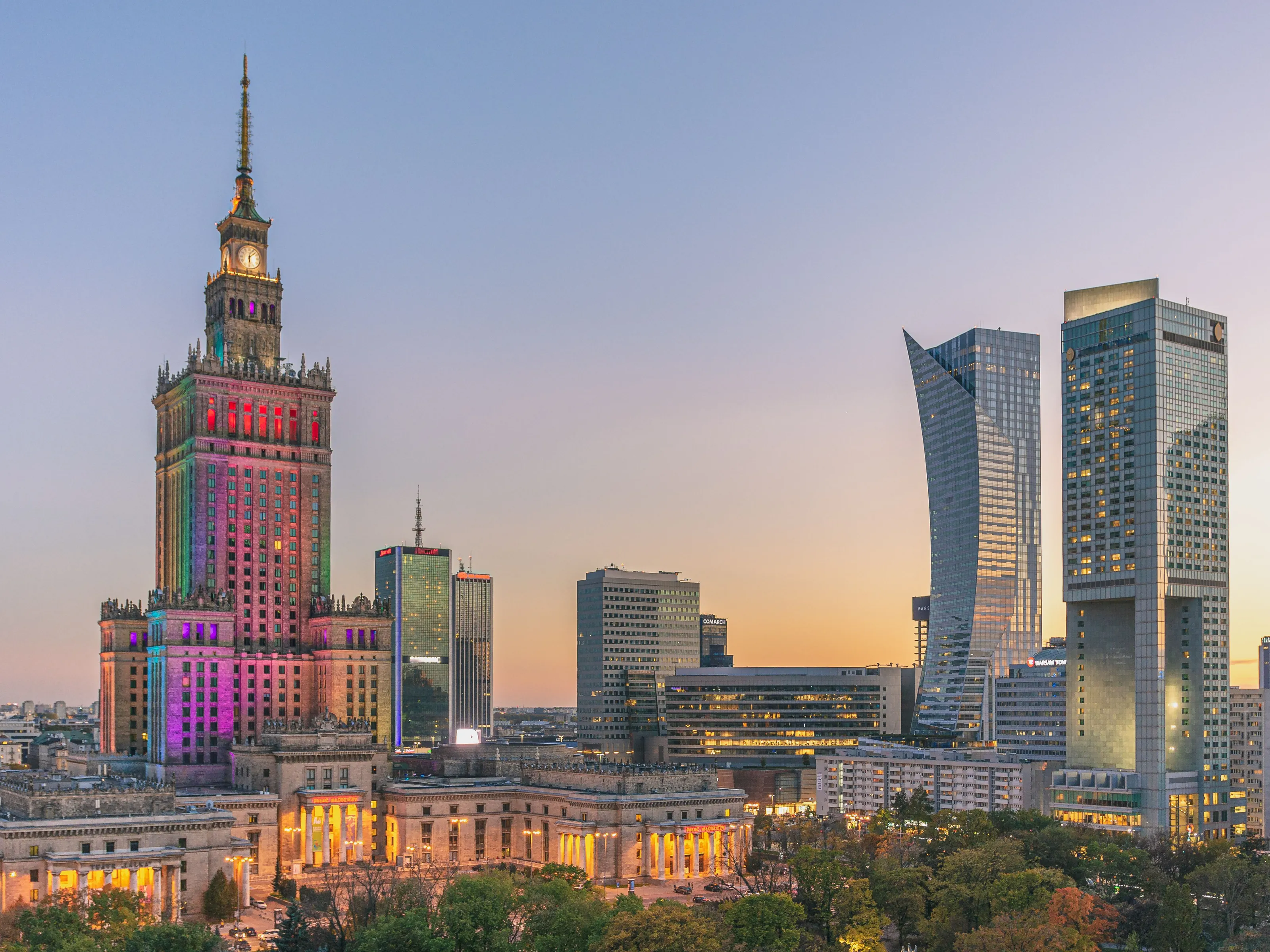 স্টালিনের ১৯৫৫ সালের পোল্যান্ডের 'উপহার'—স্থানীয়রা এই সমাজতান্ত্রিক বাস্তববাদী আকাশচুম্বী ভবনটিকে ঘৃণা করতে ভালোবাসে, তবুও এর দর্শন বারান্দায় (৩০তম তলা, ১,০৪০৳ ৩৬০° দৃশ্য) চড়ে। ভবনটিতে থিয়েটার, সিনেমা হল এবং কংগ্রেস হল রয়েছে। শহরের আলো দেখার জন্য সূর্যাস্তের সময় যান। টেরেসটি প্রতিদিন খোলা থাকে। কমিউনিস্ট যুগের বিতর্কিত প্রতীক—অনেক পোলিশ মানুষ এটিকে কুৎসিত মনে করেন, তবে এটি নিঃসন্দেহে আইকনিক। আশেপাশের প্লাজায় অনুষ্ঠান ও বাজার বসে।